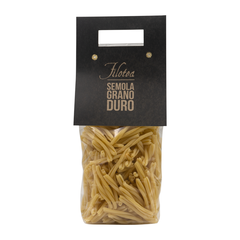 Eine authentische Caponata, die den typischen Geschmack Siziliens auf den Tisch bringt. Fein abgestimmte Auberginen, Tomaten und Oliven sorgen für einen harmonischen Start in den Abend. - Pasta „Strozzapreti“ (500g – Filotea)
