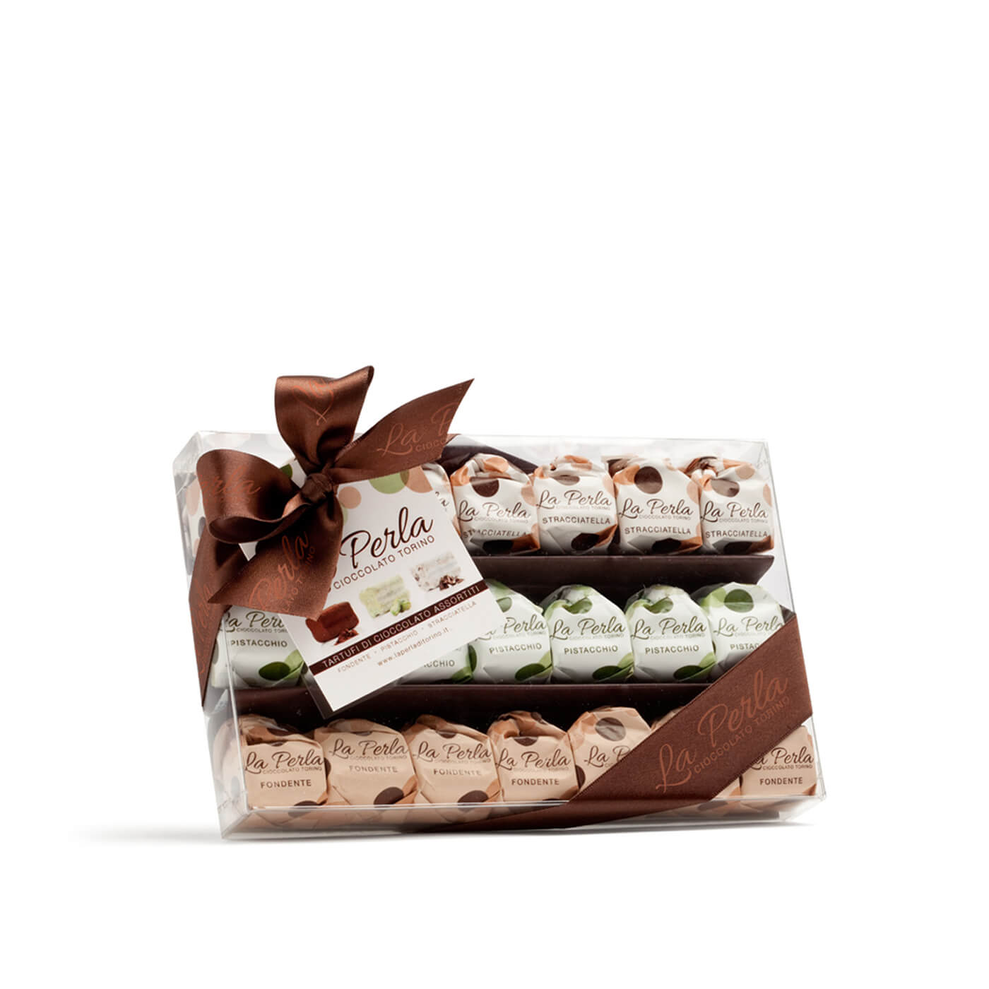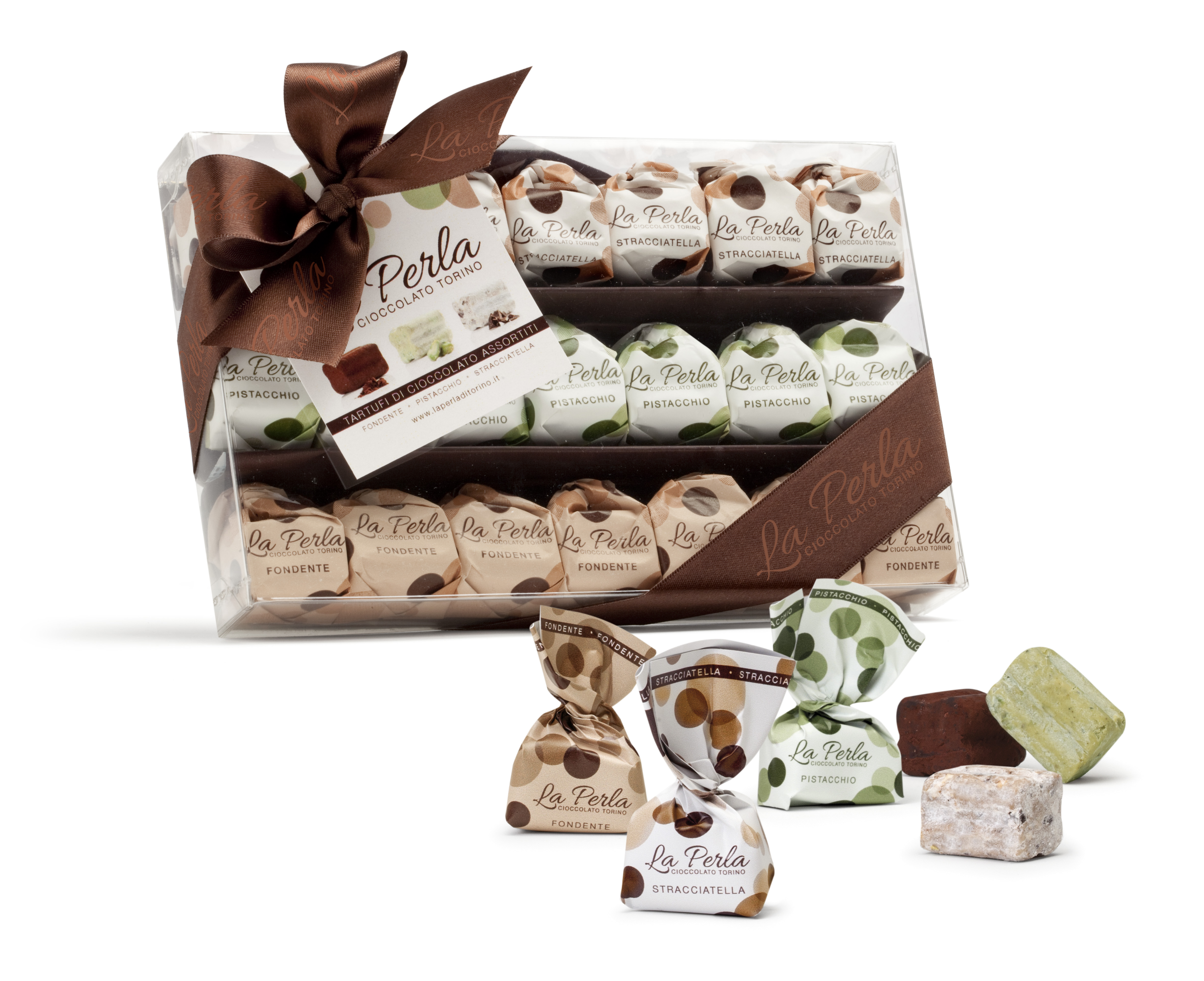 Mini-Schokoladentrüffel-Sortiment: Pistazie, Bitterschokolade, Stracciatella